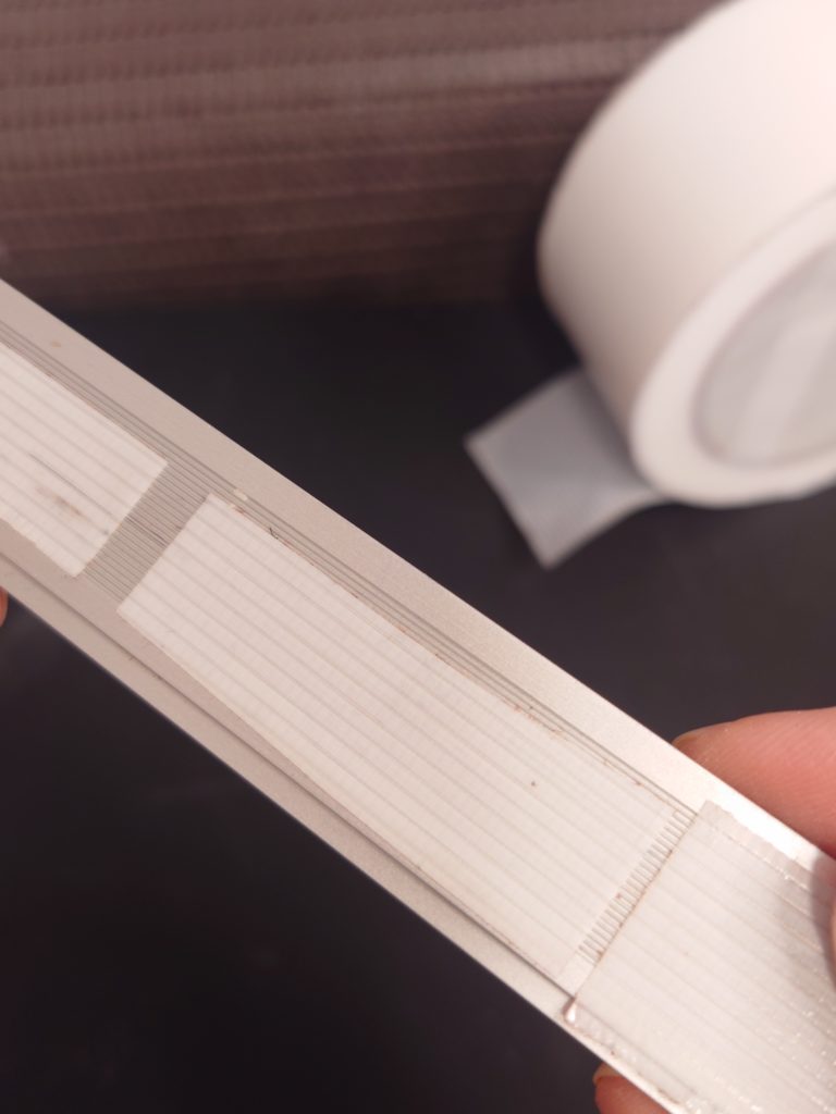 定規の裏にノンスリップテープを貼って滑り止めにしています。これで定規が動かず、正確なラインを引くことができます。