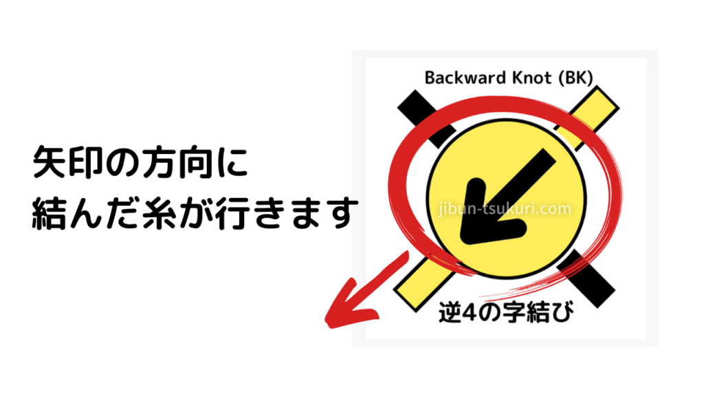 丸の中の矢印は結んだ糸がどこからどこへ行くのかを表しています。