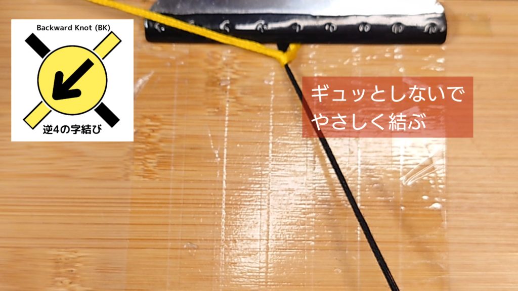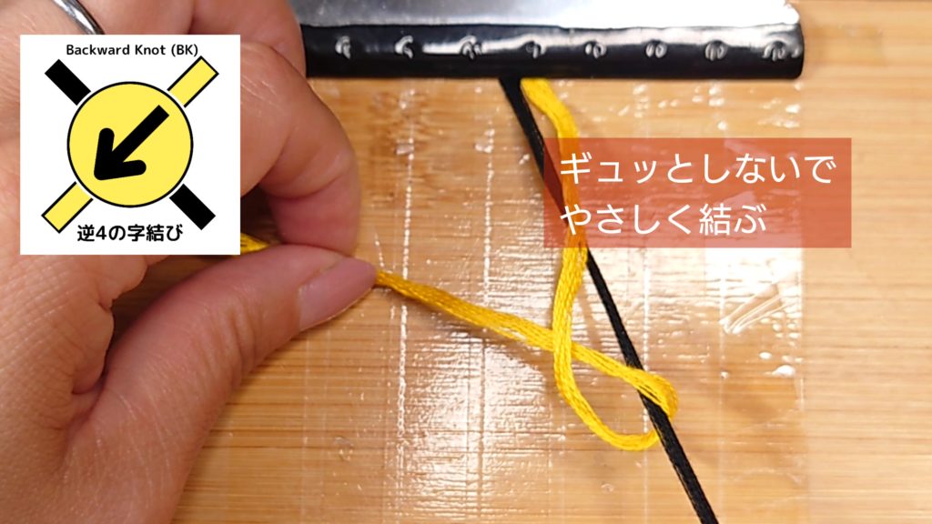 ちなみに英語名の”Backward Knot”とは「後方に向かって結ぶ」という意味。なんかかっこいい。